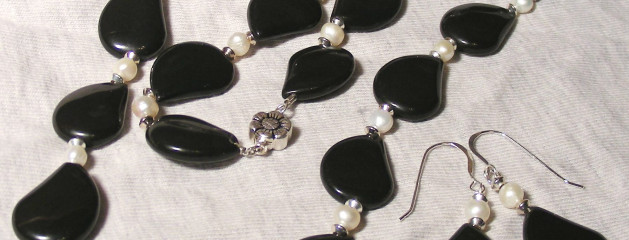 Shaped Black Onyx and Pearl Necklace and Earring Set
