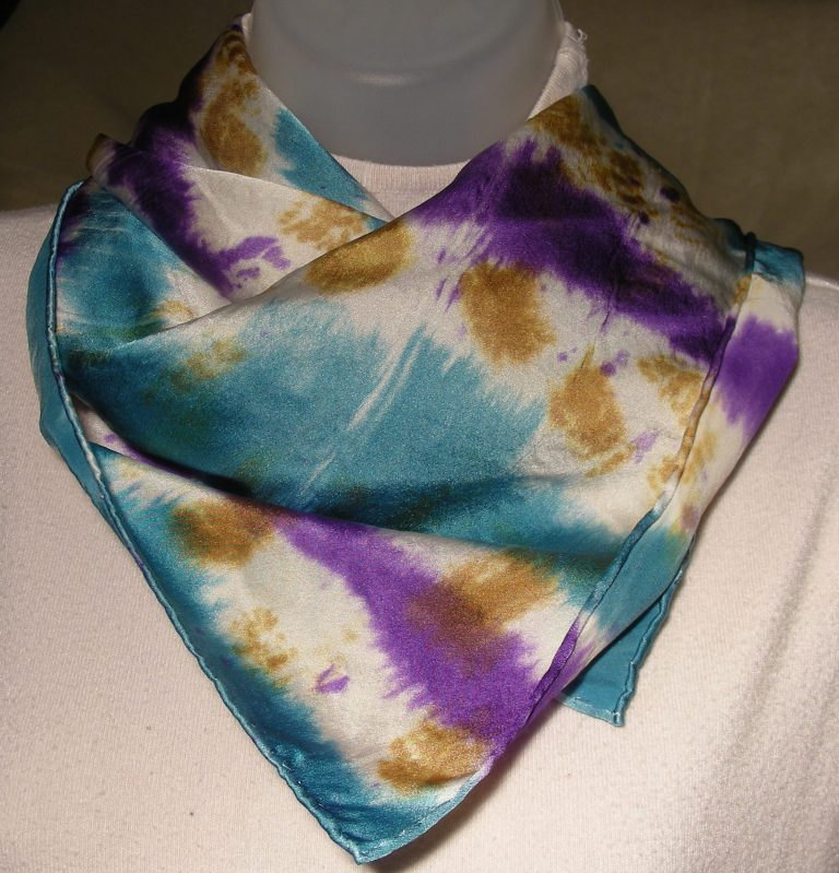 This lovely, 100% Silk charmeuse scarf is a generous 22″x22″, and a heavy 19mm weight. Feels luxurious to the hand and around your neck.