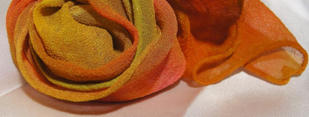 Silk Chiffon Neck Scarf 6×20 Posted by admin on Jan 26, 2013 in Scarves | Small ponytail tie or neck scarf – oranges, golds, magentas and moss greens – 6×20 – $5